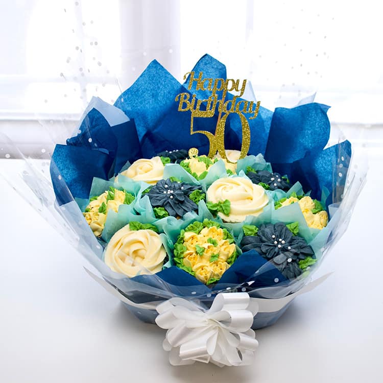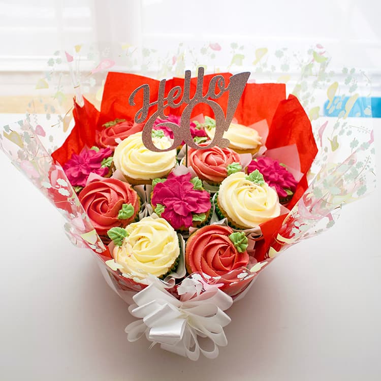 Freshly baked and decorated as flower petals, your beautifully wrapped cupcakes can be customised with a custom topper to mark a special occasion. Ask about our delivery service!
